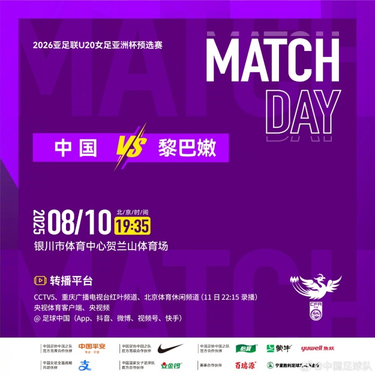 U-20女足将于8月10日19点35分,在贺兰山体育场迎战黎巴嫩队。